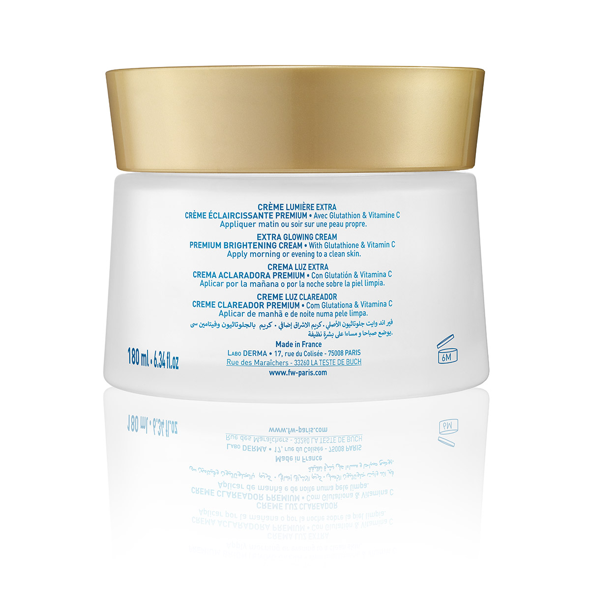 Crème Eclaircissante Premium Visage & Corps | 180mlPensez à trier vos emballages ! Pour en savoir plus sur les consignes de tri en France : www.consignesdetri.fr